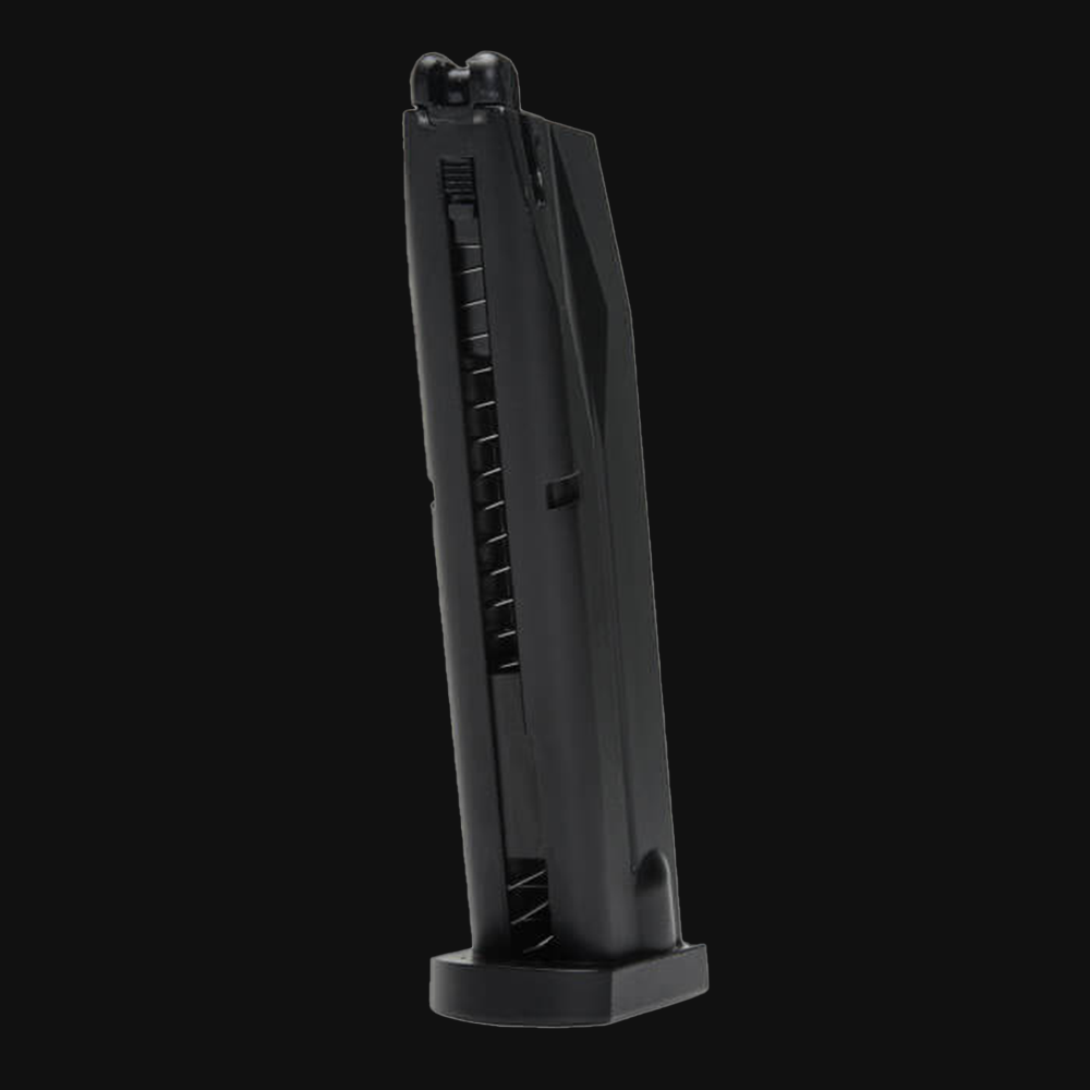 This Beretta M92 A1 airsoft sidearm is an officially licensed 1:1 scale replica of one of Beretta's finest and most recognizable pistols. Featuring licensed trademarks on both the slide and checkered grips, this FULL AUTO M92 A1 airsoft pistol features crisp CO2-powered blowback action that gives satisfying recoil with every semi-auto shot. It's metal construction makes this airsoft handgun reliable and dependable. With it's adjustable hop up and 330 FPS with 0.20g BBs, this blowback pistol has both the range and accuracy you'd count on in an airsoft skirmish. The 22 BB drop-free magazine also holds a single 12g CO2 cartridge. The lower frame is railed for attaching aftermarket optics such as a flashlight or laser.