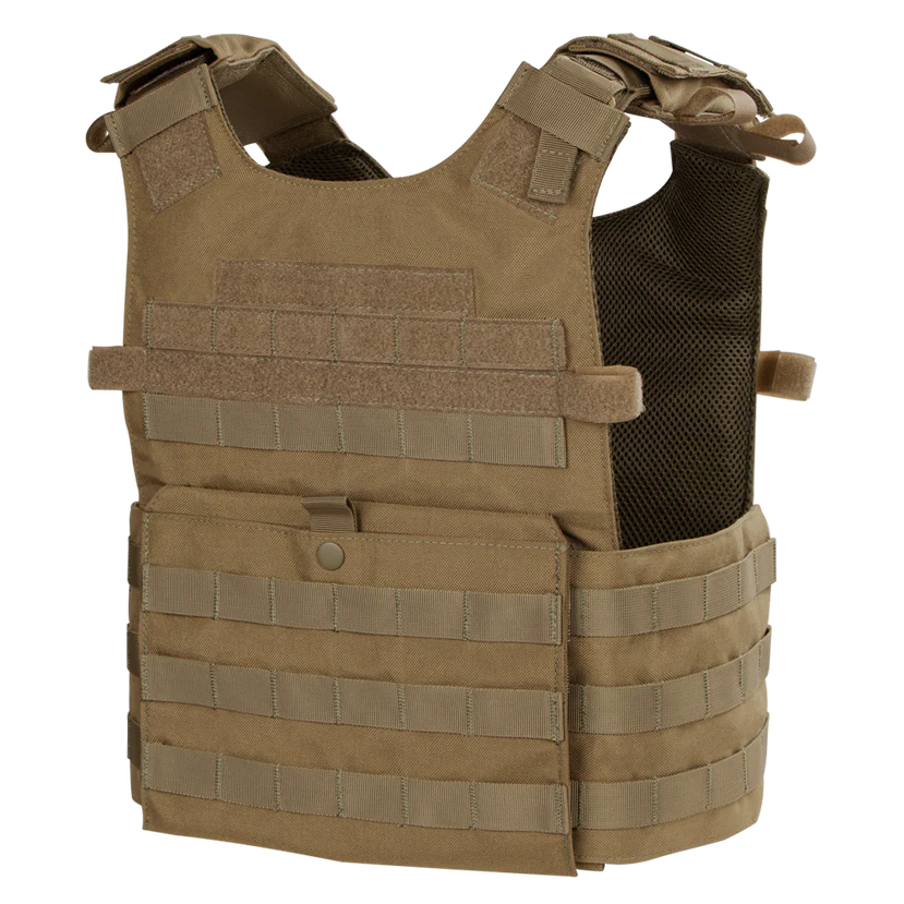 The Condor Gunner Plate Carrier is the minimized version of our classic Condor Quick Release Plate Carrier. Ser in size but just as tough, this plate carrier vest offers a more comfortable fit while holding standard sized plates. To ensure an ideal fit, the vest also features adjustable shoulder straps and an adjustable cummerbund. Plate carrier pockets are quickly accessible so that plates can be inserted and removed promptly. The additional MOLLE webbing allows for plenty of modular attachments on the front, back, and cummerbund for added utility. The lightweight design includes a breathable 3D mesh liner to keep users feeling cool and comfortable. Wear the Condor Gunner Plate Carrier to protect yourself on potentially dangerous missions.