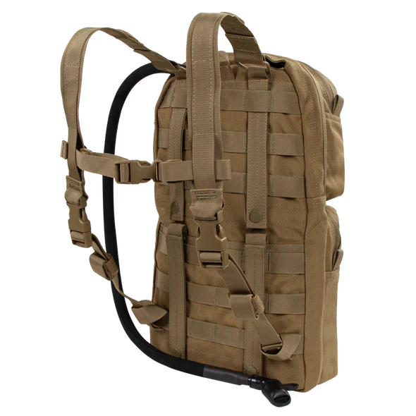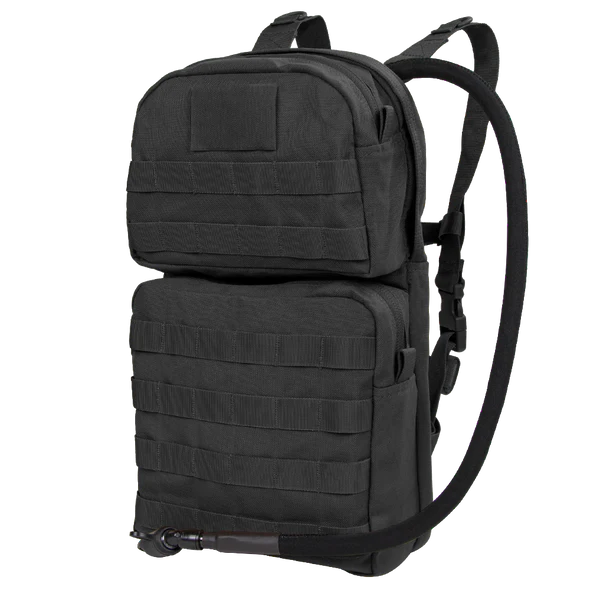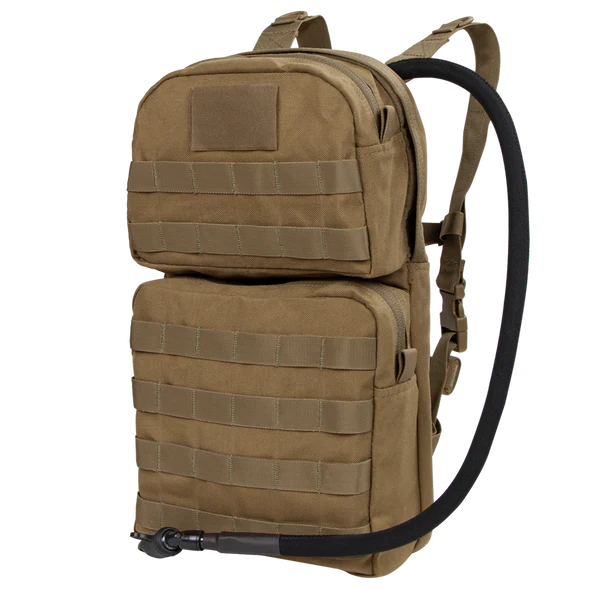 Stay hydrated when you're enjoying outdoor activities or participating in any challenging mission with the Hydration Carrier 2 from Condor Outdoor. This updated version of the original hydration pack includes a number of notable features. The tactical bag comes with a 3-liter bladder (221219) to accommodate a plentiful water supply. Two zipper compartments provide plenty of additional storage space, making it a great general use backpack in addition to being a rugged hydration pack. The Condor Hydration Carrier 2 also comes with removable shoulder and sternum straps, allowing it to be worn directly on your back. Alternatively, the built-in MOLLE straps and webbing provide the option of adding the pack onto a plate carrier or vest so that the straps are not required for use. Additional MOLLE webbing is featured on the front of the Condor Hydration Carrier for securing any modular attachments required for your mission or outing.