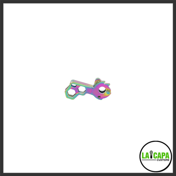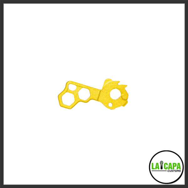The LA Capa Customs HIVE Hammer comes in 12 unique colors and is made of a strong duralumin material. It is designed to make a “ding” sound when shooting for extra satisfaction. This hammer is built to TM spec to be drop in, and provides the perfect amount of lightweight feel and a pop of color for your build.
