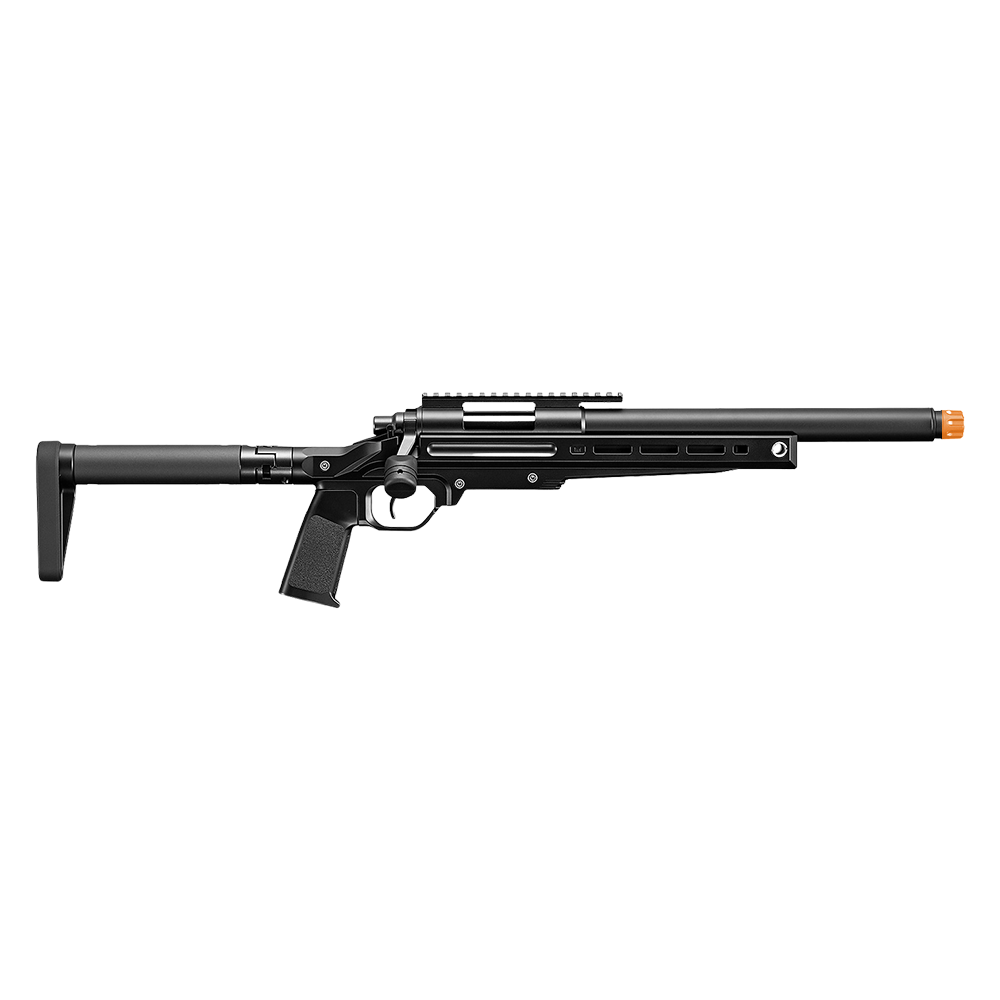 The VSR-ONE employs a range of contemporary features such as a chassis donned with an M-LOK rail system and QD holes, a sight mount rail for open view, an upscaled bolt handle, and an M4-style pistol grip. The compact barrel size improves dexterity, and a foldable stock guarantees superior portability.