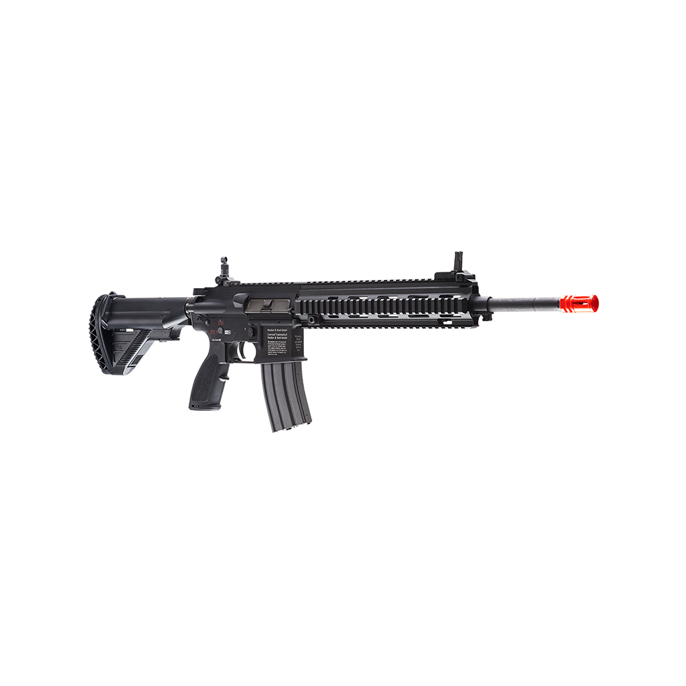 HK M27 IAR M4 AEG made by VFC is a fully licensed Heckler & Koch airsoft fun made by the team at Umarex USA. This new version features an upgraded Avalon ECS gearbox. This is a top-of-the-line and advanced AEG with full metal construction, accepts standard M4/AR15 style airsoft magazines, retractable stock with easy access to the battery compartment, and front and reat flip-up iron sights.